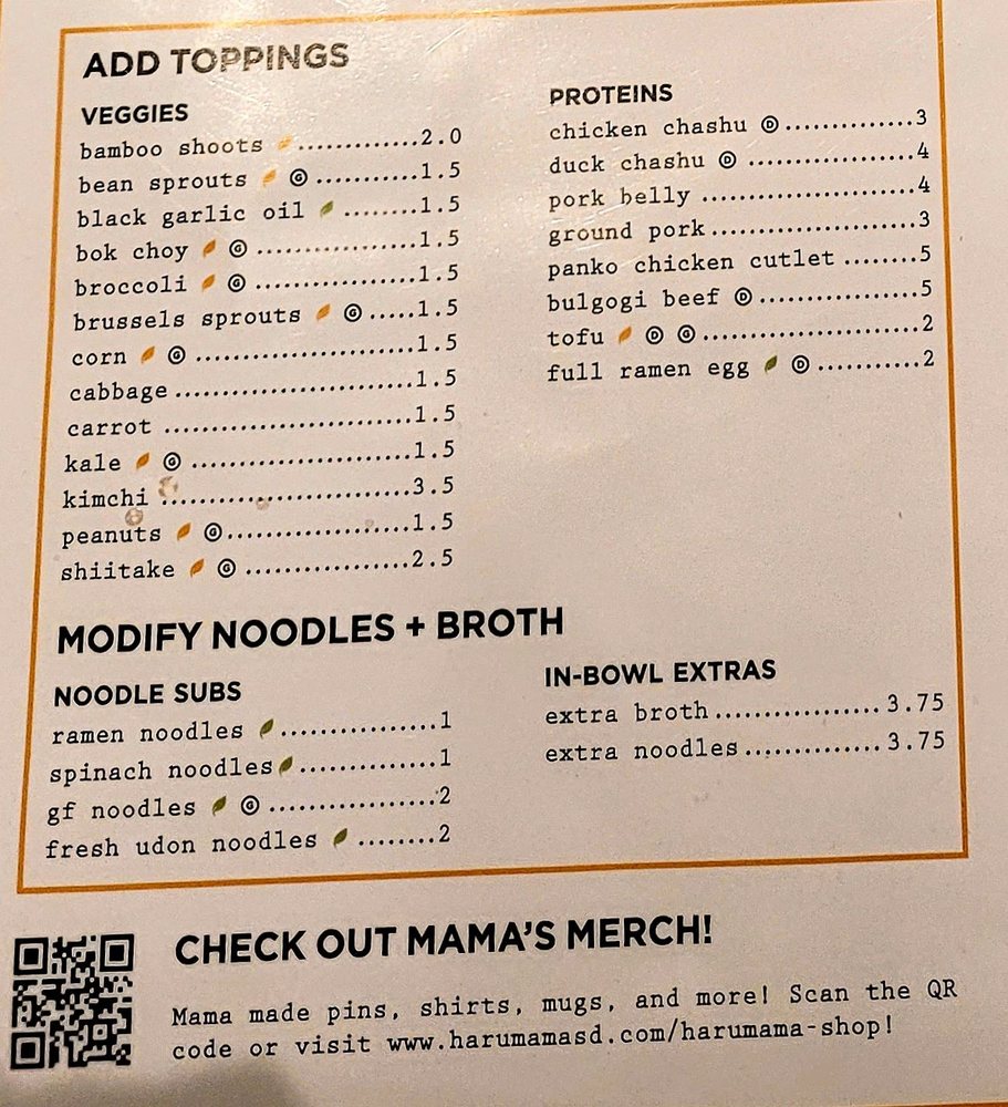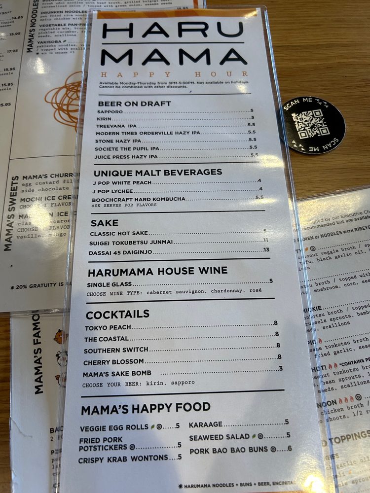 Harumama Noodles + Buns + Beer (Encinitas) Menu